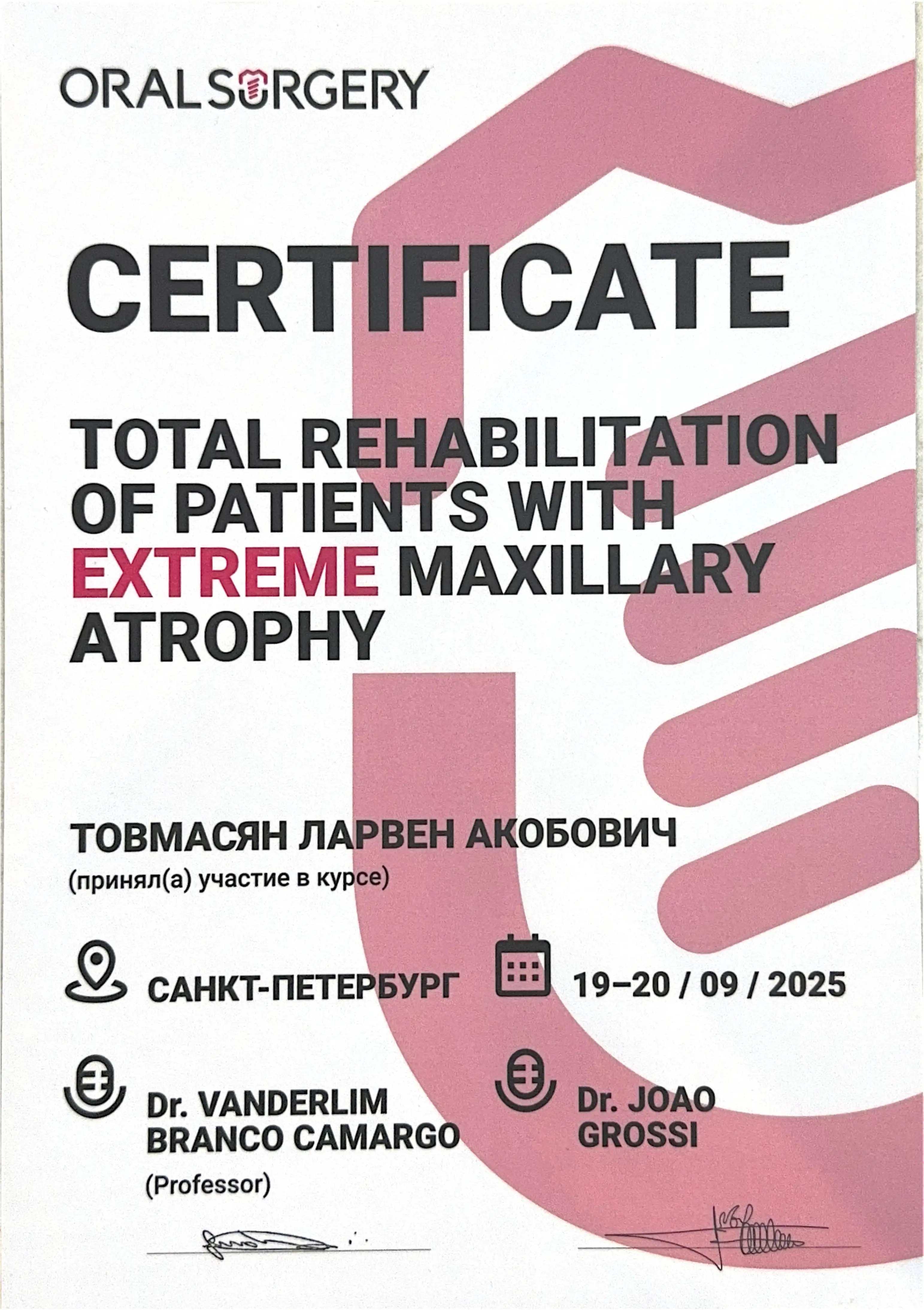 Total rehabilitation of patients with extreme maxillary atrophy (Реабилитация пациентов с экстремальной атрофией челюсти), Санкт-Петербург