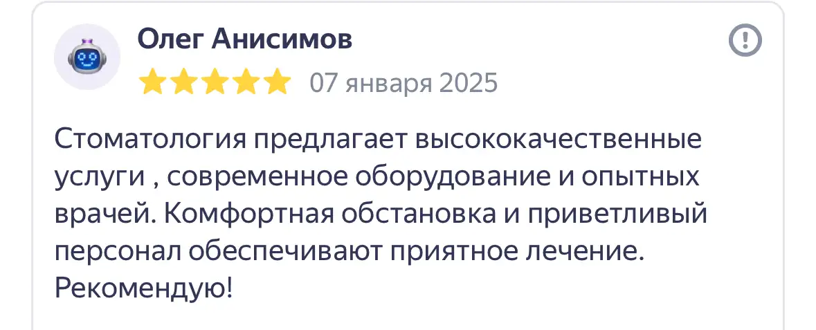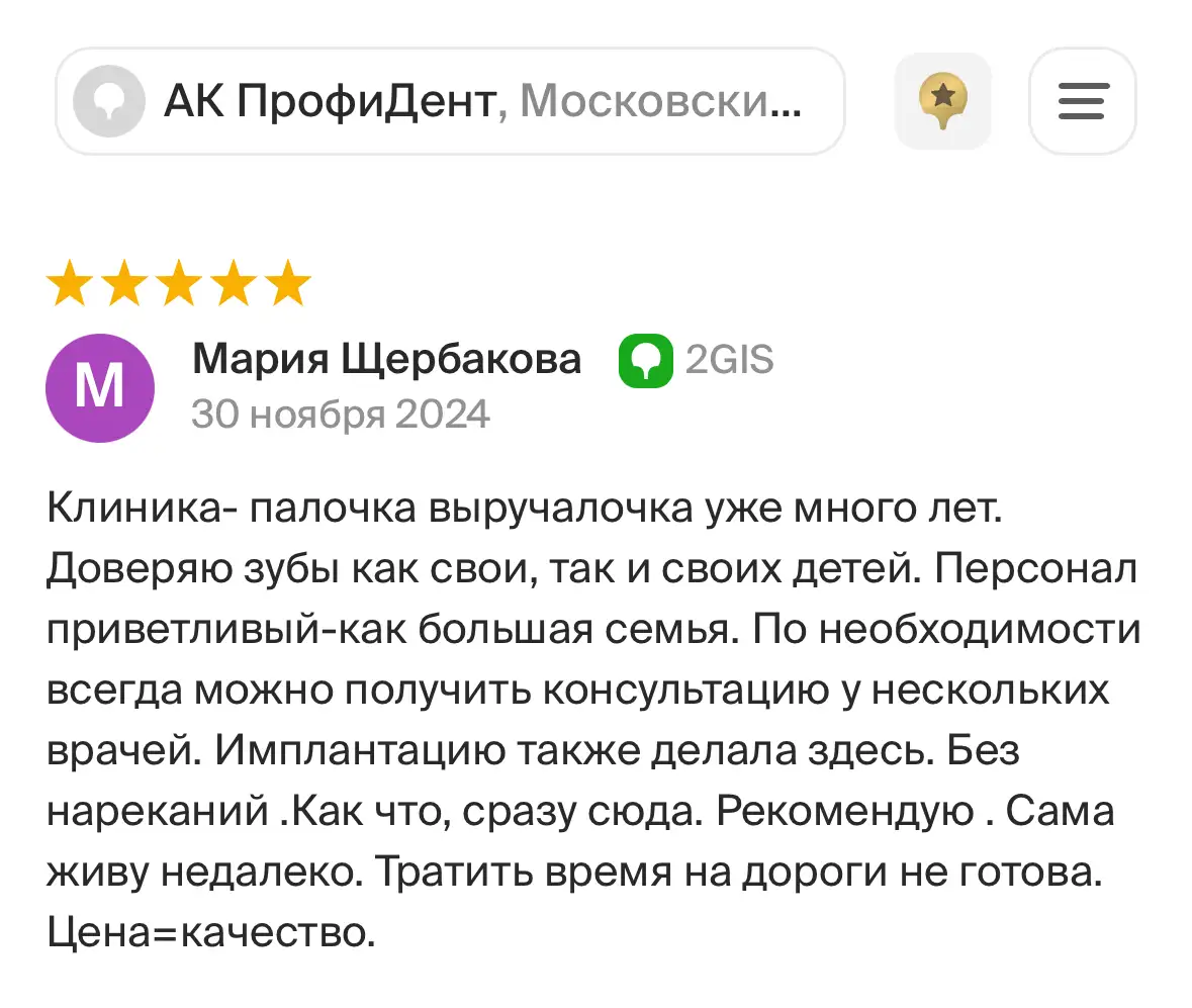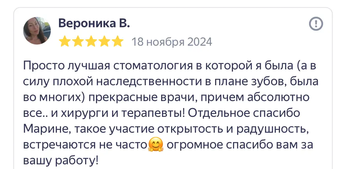 За 14 лет успешной работы мы выросли из маленькой клиники на 3 кресла в большой стоматологический центр площадью почти 500 кв м с детским отделением, операционным блоком, современным КТ аппаратом, точнейшим микроскопом и иным современным оборудованием. Мы уже помогли более 30 000 пациентам и получаем довольные отклики.